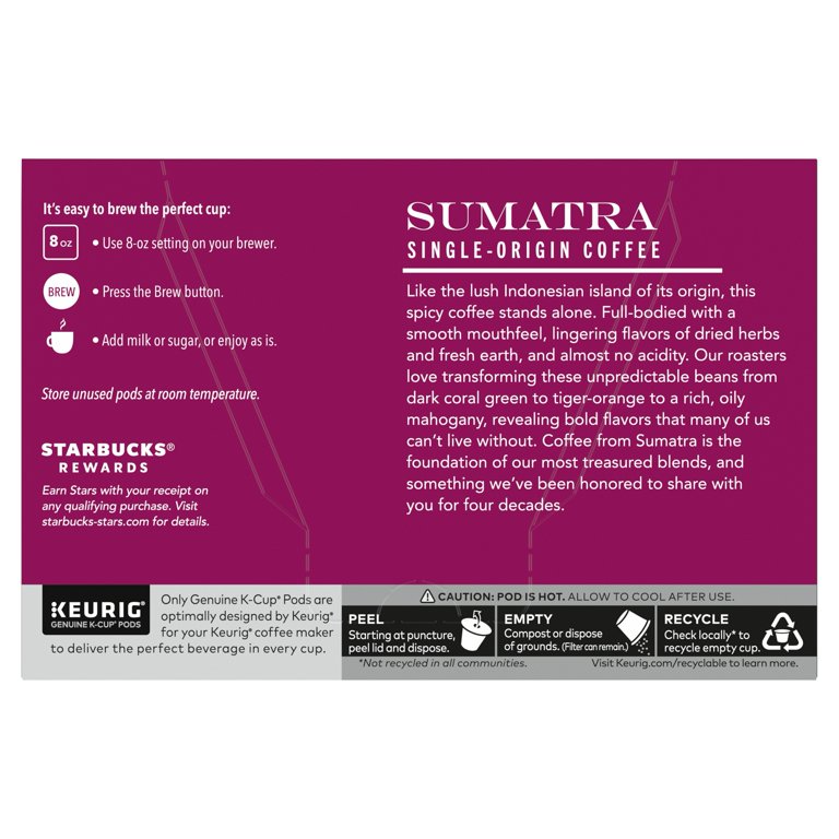Starbuck Kcup Sumatra 4 2 Oz Walmart Com